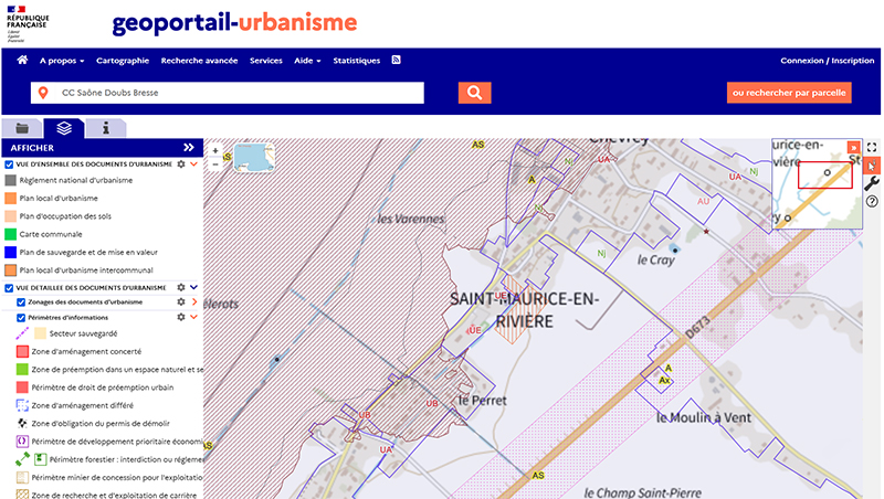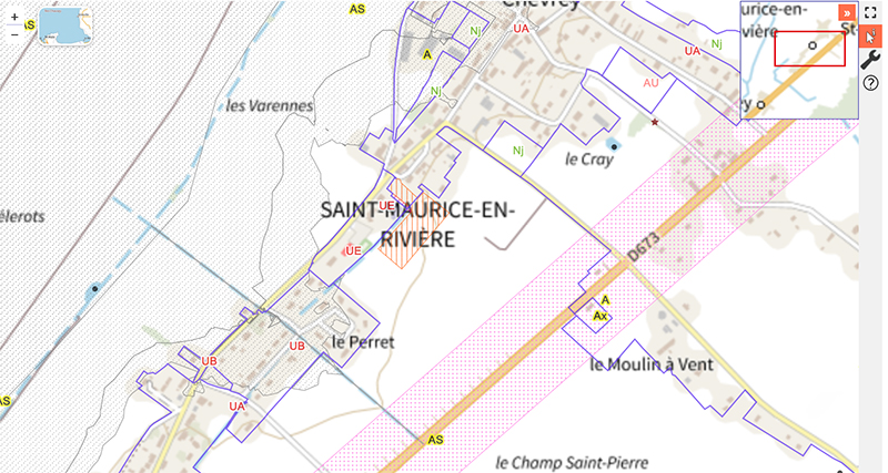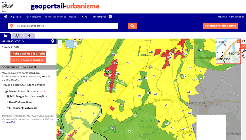 Recherche par adresse ou avec le numéro précis d’une parcelle du plan de zonage (exemple : Saint-Maurice-en-Rivière)